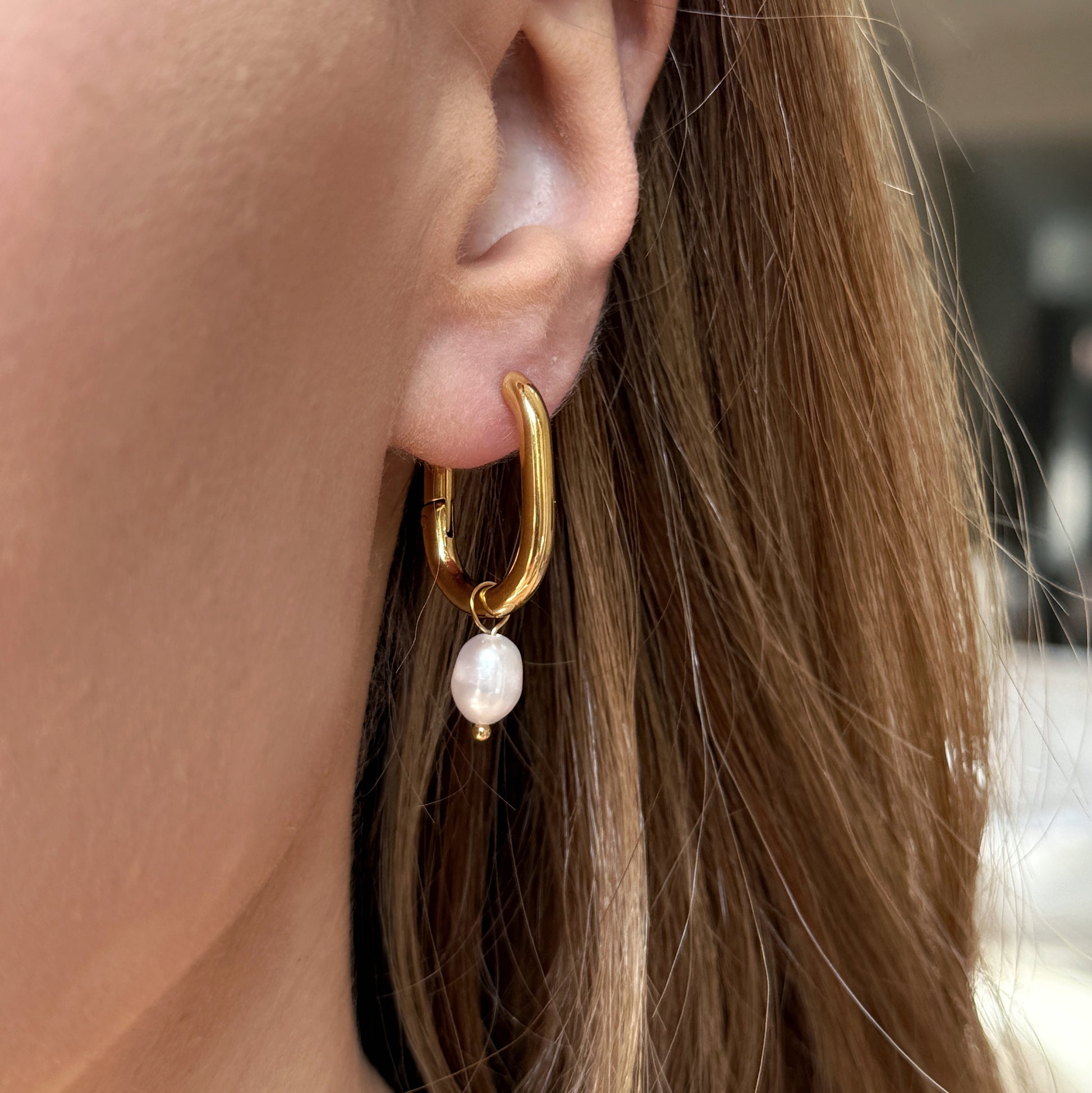 These unique square pearl drop earrings blend geometric shapes with classic pearls for a contemporary twist. Their modern design makes them a versatile accessory for both day and night.